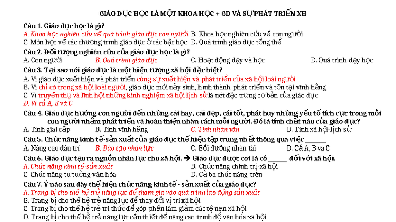 Ôn Tập TNKQ GDHĐC K11 Tài Liệu Ôn Tập Giáo Dục Học Studocu