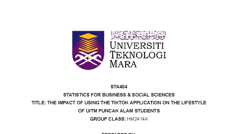 STA404 GROUP PROJECT: IMPACT OF TIKTOK ON UITM STUDENTS #39 LIFESTYLE