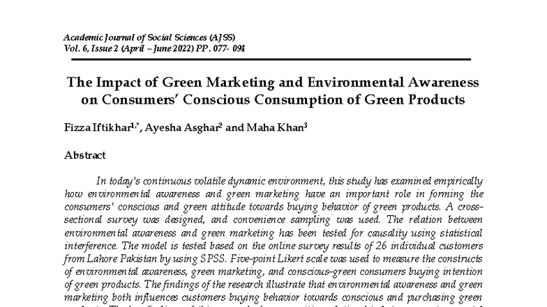 The Impact of Green Marketing Environmental Awareness on Consumer