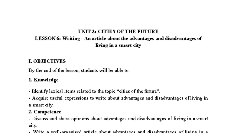 3: CITIES OF THE FUTURE LESSON 6: Writing on Smart City Pros Cons