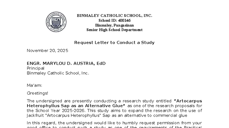 Request Letter for Research Study on Heterophyllus Sap PR II Studocu