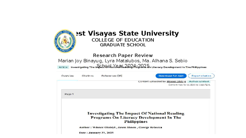 Research Review: Impact of National Reading Programs on Literacy in PH