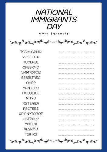 National Immigrants Day word scramble puzzle worksheet Activity
