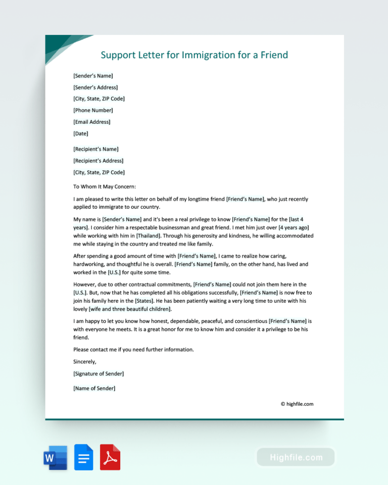 Immigration Letter Of Support 5 Templates To Edit Freely