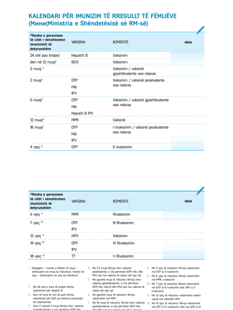 MKD vaccines immunization calendar 2022 (alb) PDF