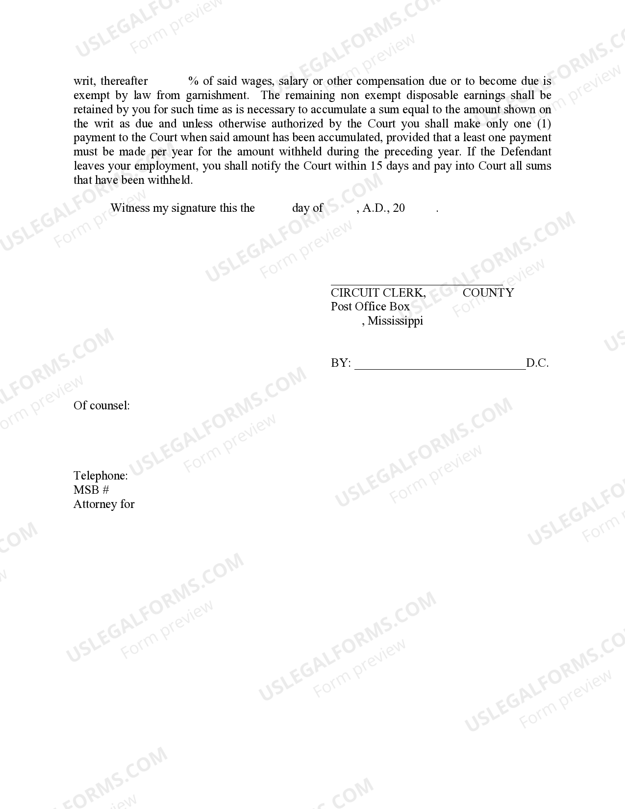 Mississippi Writ Of Garnishment Answer Form US Legal Forms