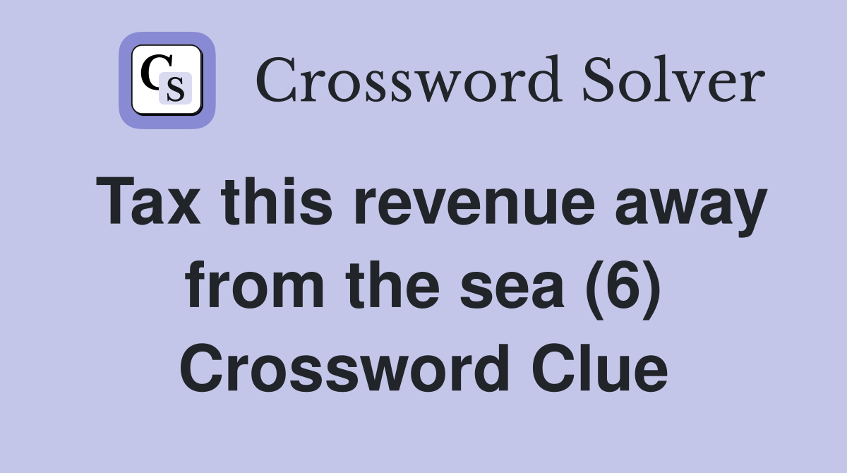 Tax this revenue away from the sea (6) Crossword Clue Answers