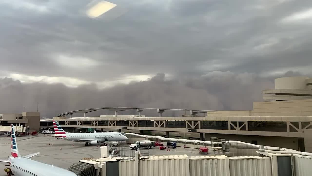Imposing dust storm sweeps through airport in Phoenix
