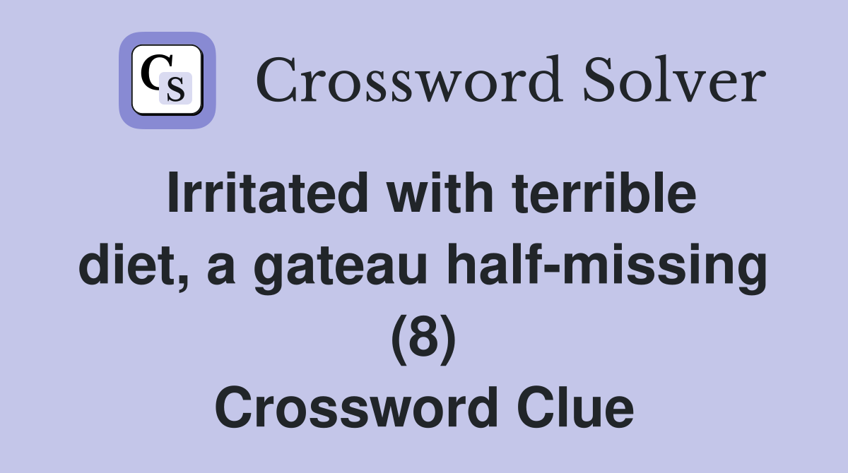 Irritated with terrible diet a gateau half missing (8) Crossword
