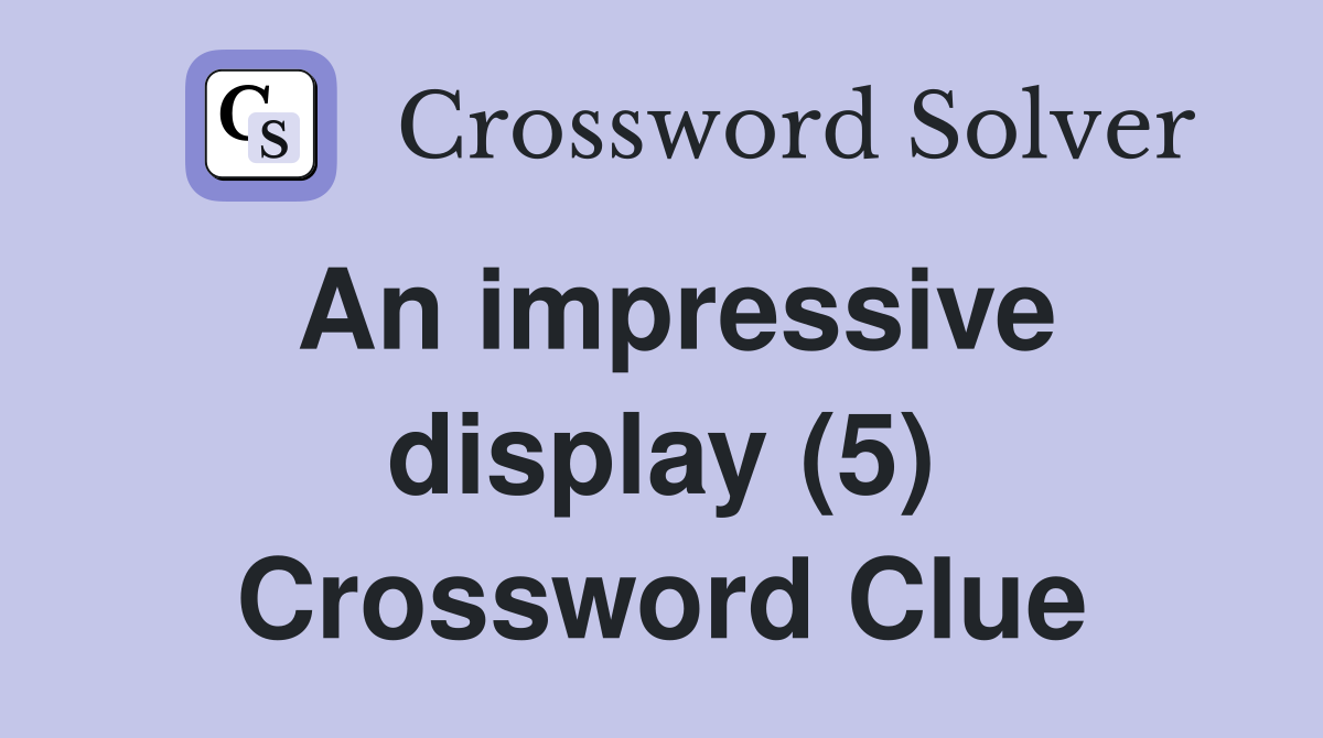 An impressive display (5) Crossword Clue Answers Crossword Solver