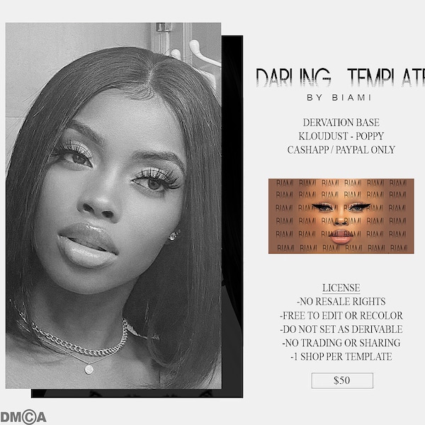 DSR 002 Ready to use IMVU Skin Mesh Head/Second life skin template 4K PNG