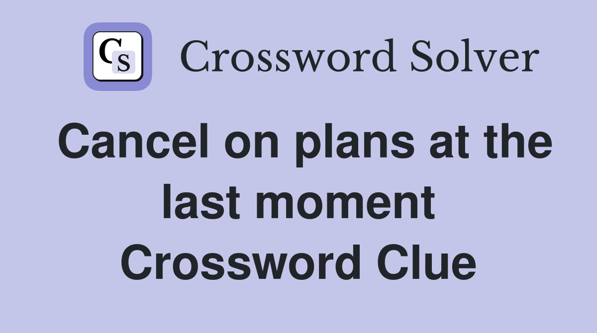 Cancel on plans at the last moment Crossword Clue Answers Crossword