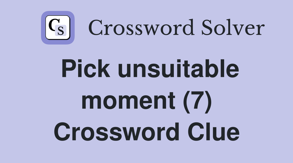 Pick unsuitable moment (7) Crossword Clue Answers Crossword Solver
