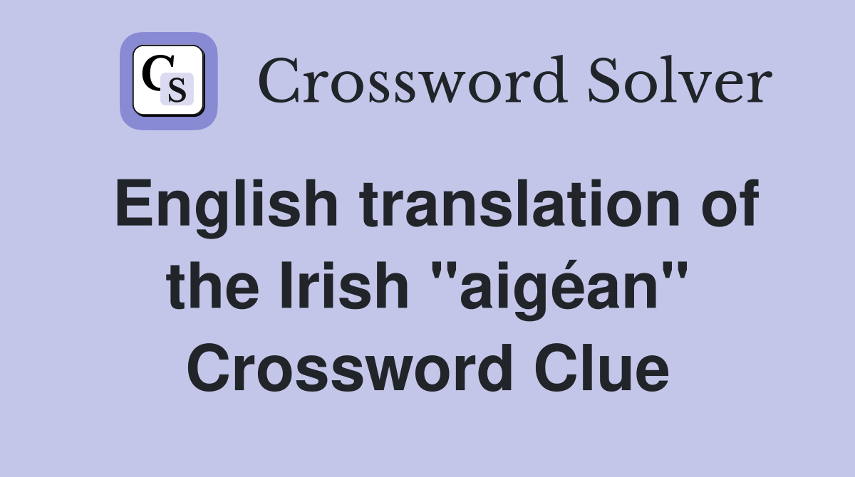 English translation of the Irish quot aigéan quot Crossword Clue Answers