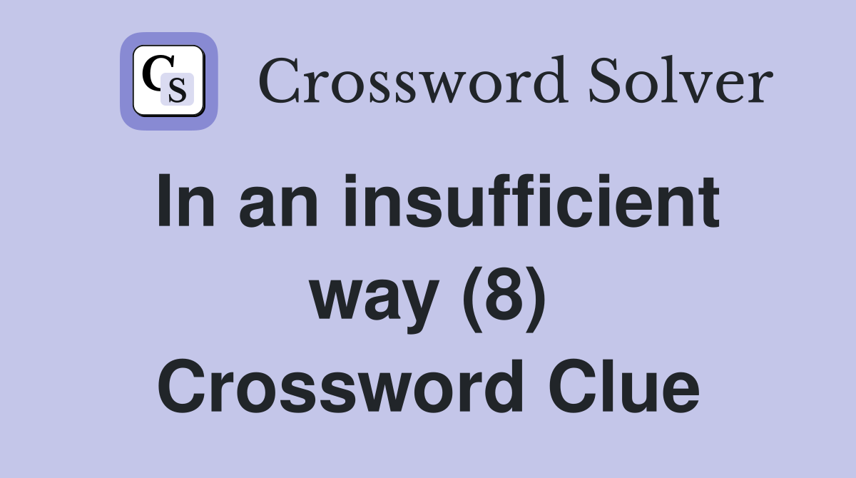 In an insufficient way (8) Crossword Clue Answers Crossword Solver