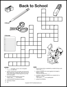 Back to School Crossword Puzzles Tree Valley Academy
