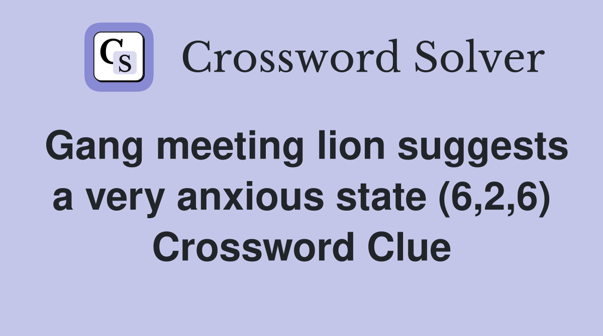 Gang meeting lion suggests a very anxious state (6 2 6) Crossword