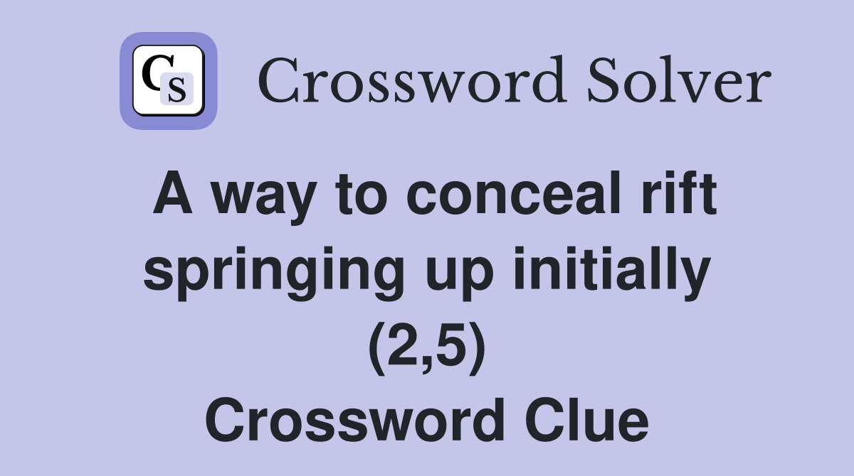 A way to conceal rift springing up initially (2 5) Crossword Clue