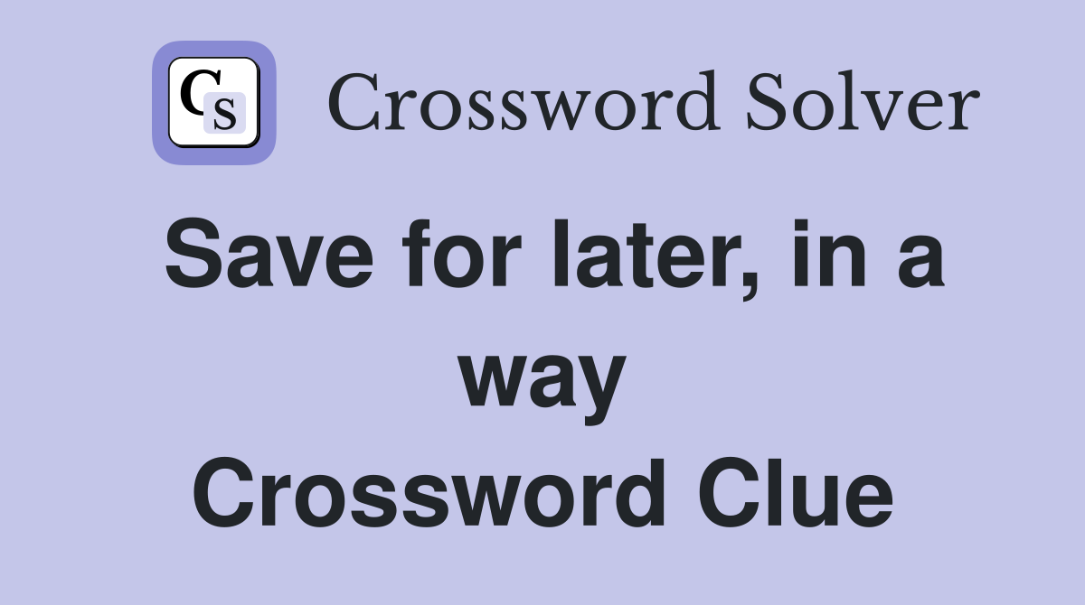 Save for later in a way Crossword Clue Answers Crossword Solver