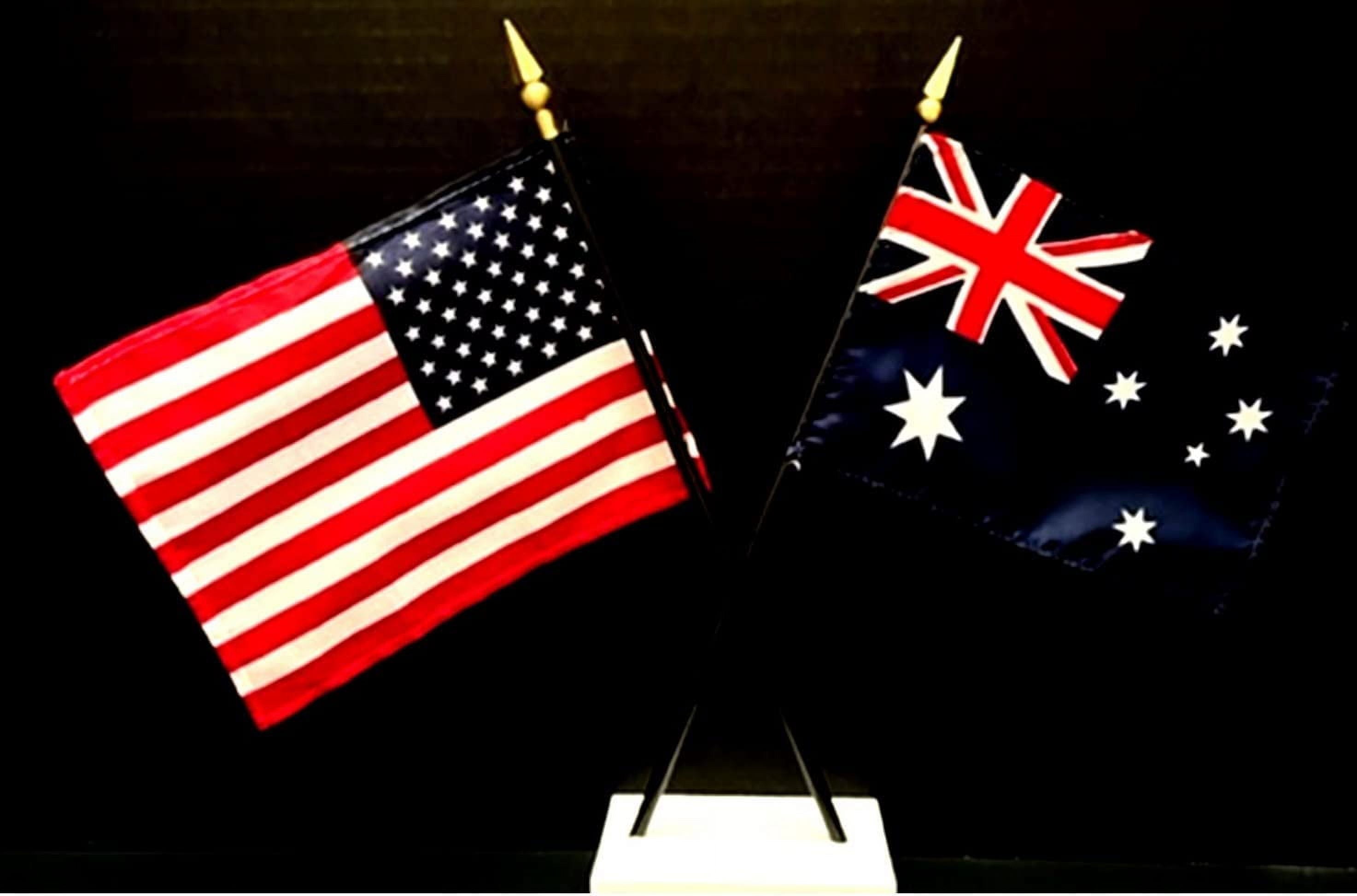 Australia Desk Flag Set Contains One USA and One Country Flag with a