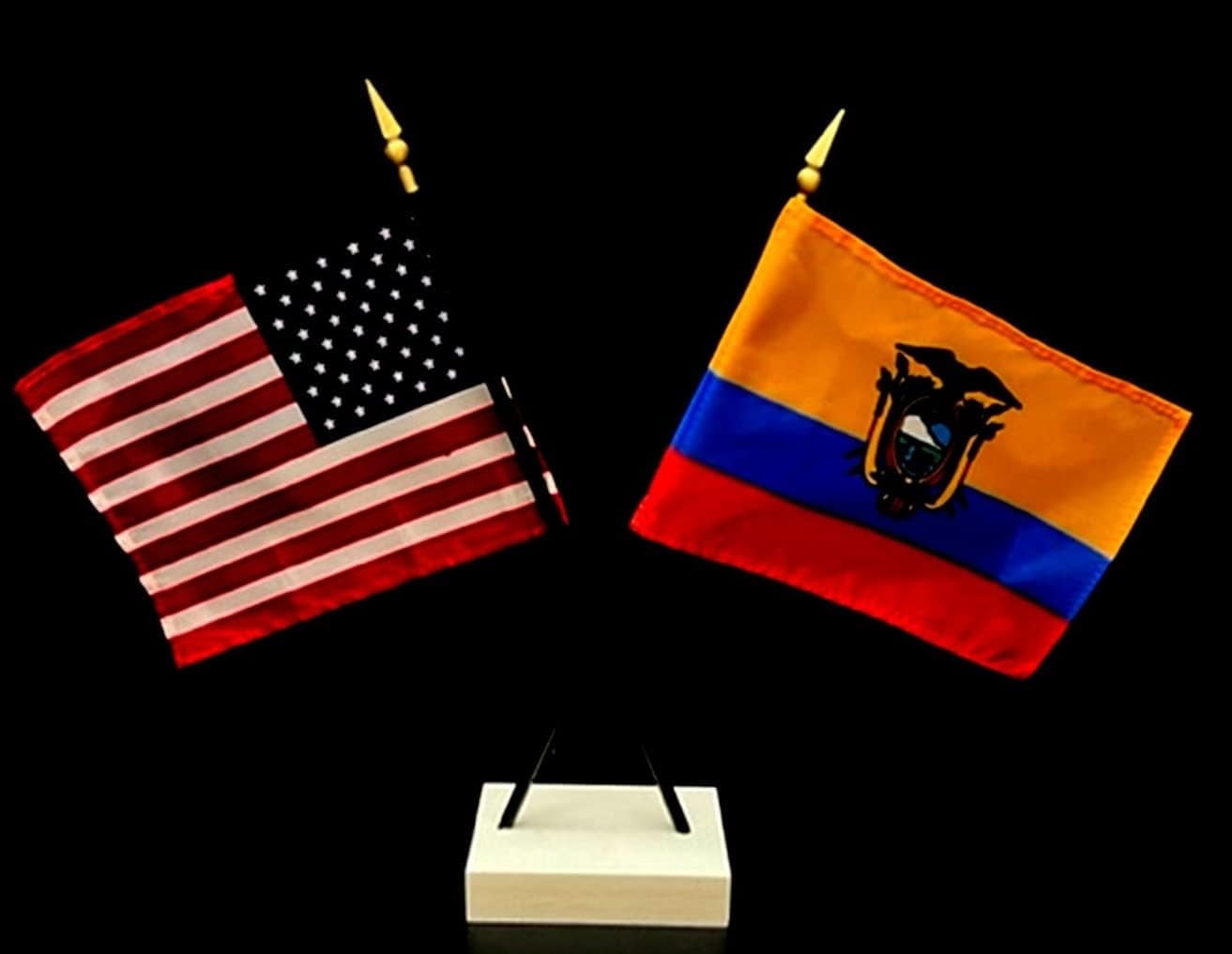 Ecuador Desk Flag Set Contains One USA and One Country Flag with a