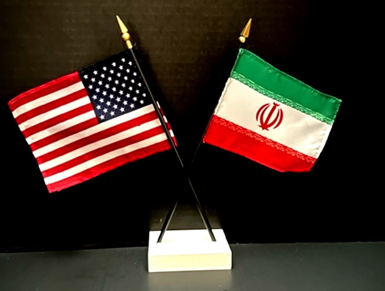Iran Desk Flag Set Contains One USA and One Country Flag with a White