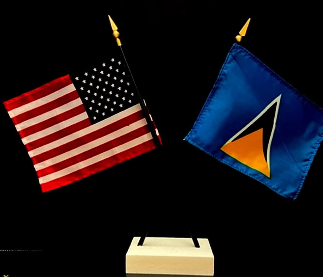 St Lucia Desk Flag Set Contains One USA and One Country Flag with a