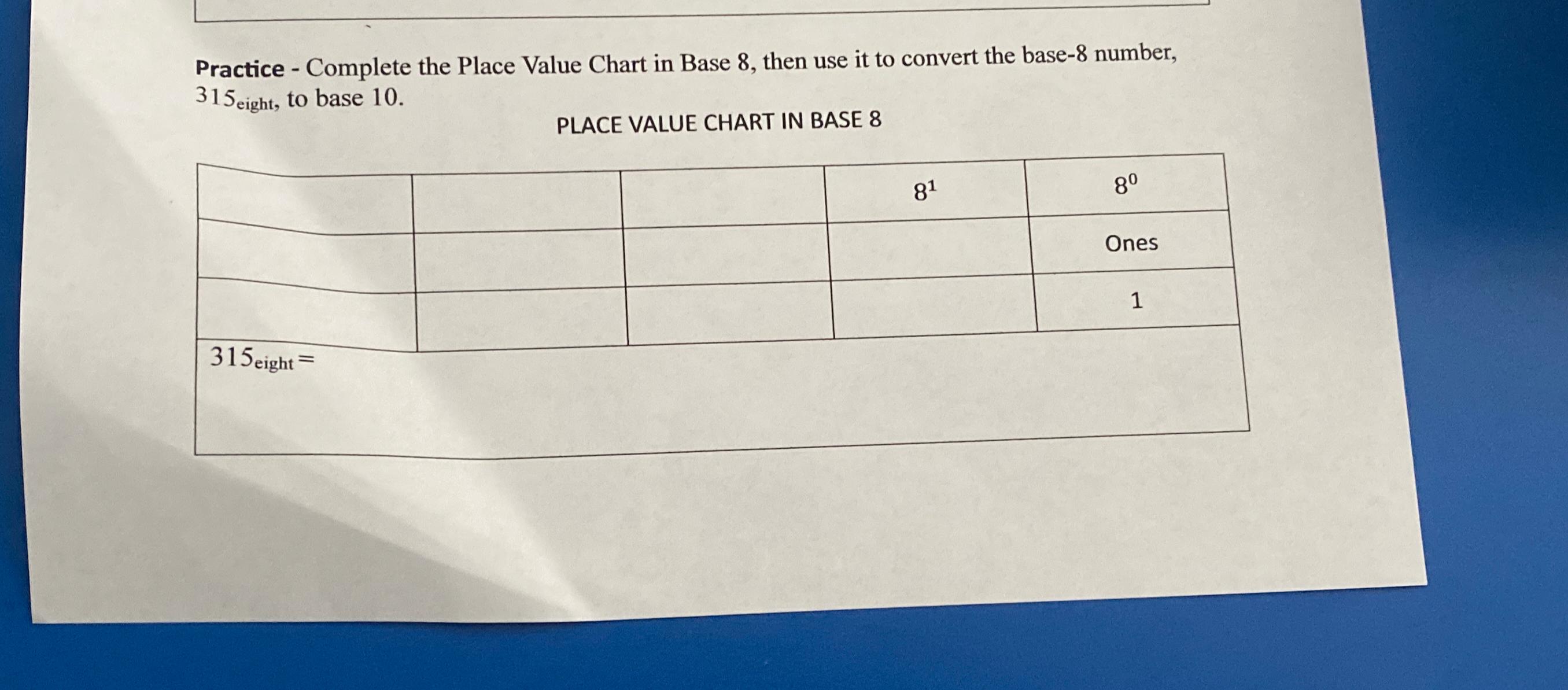 Solved Practice Complete the Place Value Chart in Base 8 Chegg com