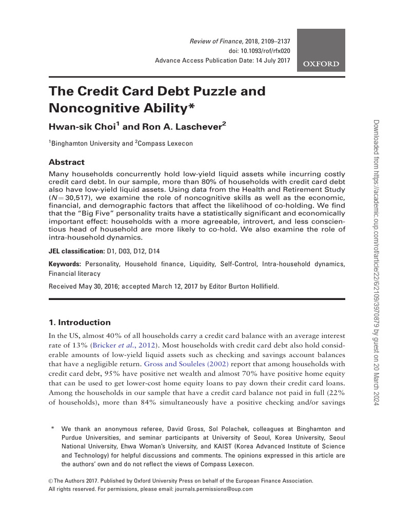 (PDF) The Credit Card Debt Puzzle: New Facts and Theory