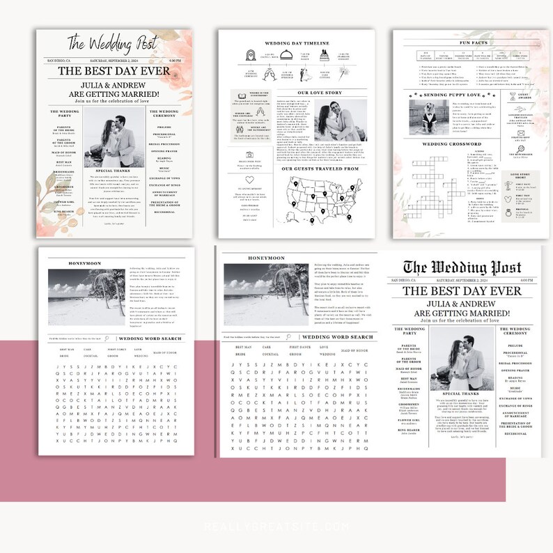 Newspaper Wedding Program Template Editable Wedding Newspaper Program