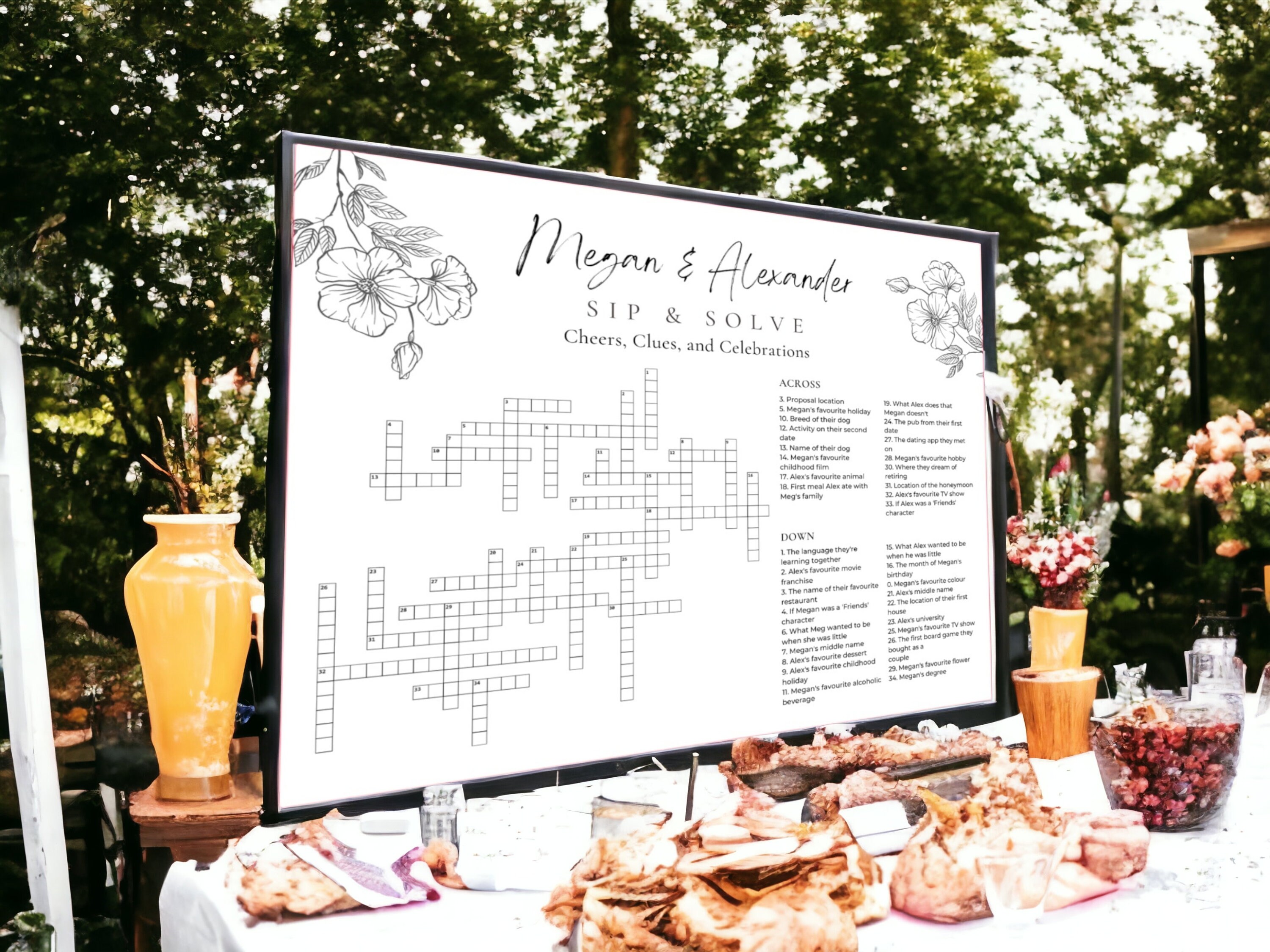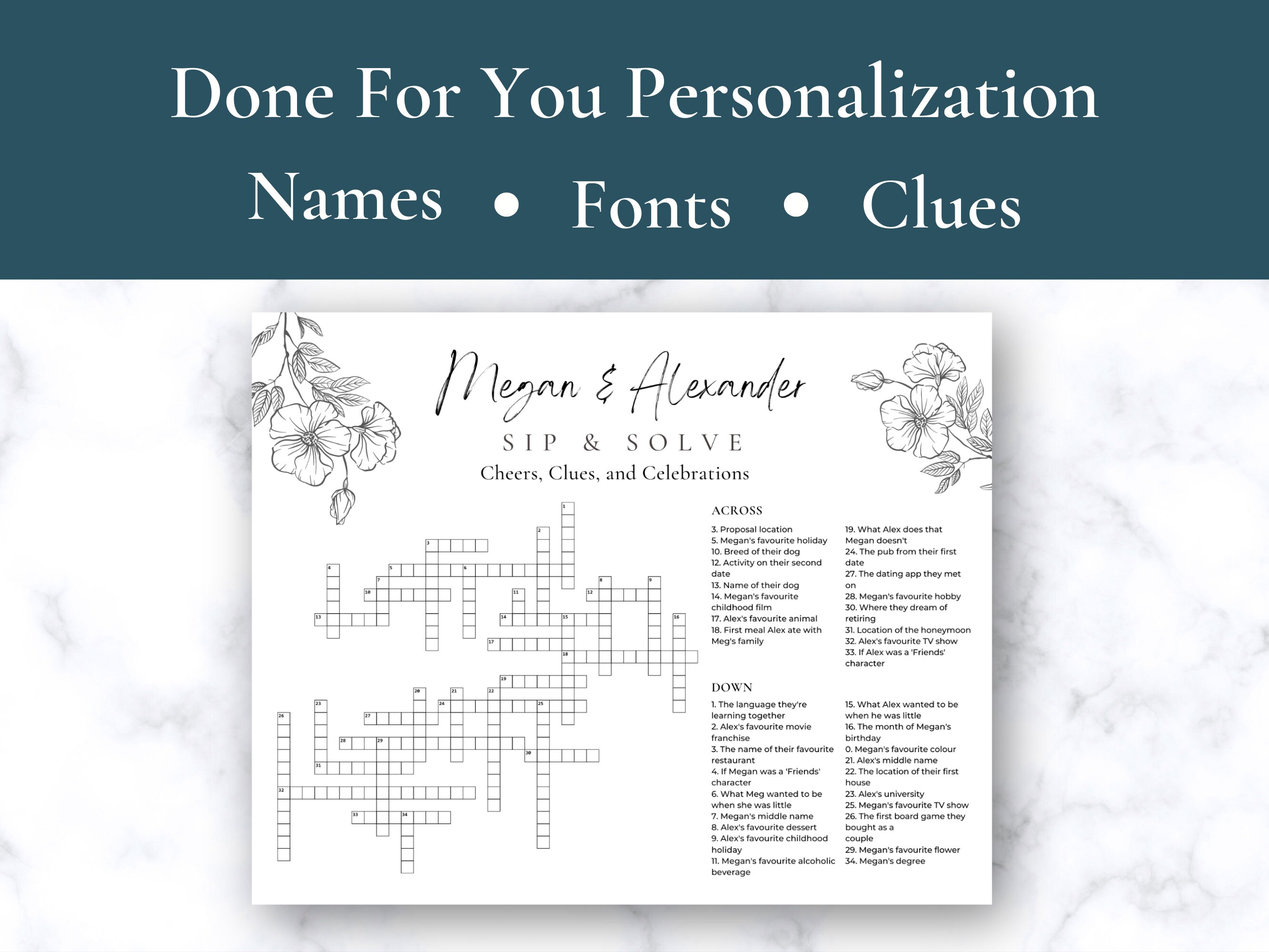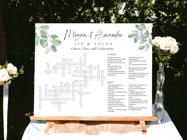 Elegant Floral Wedding Crossword Puzzle Custom Design Etsy