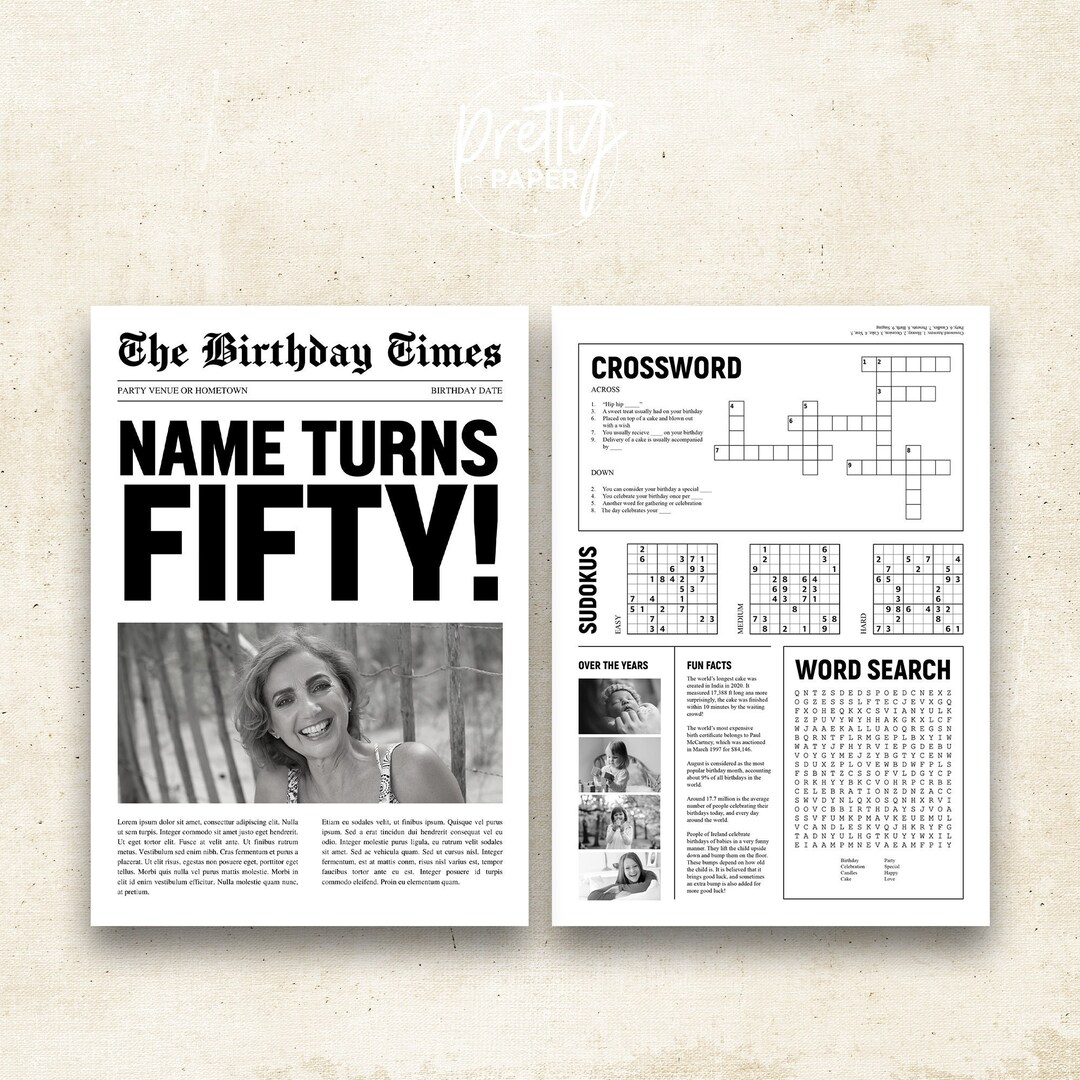 The 50th Birthday Times Editable Newspaper Party Favour Entertainment