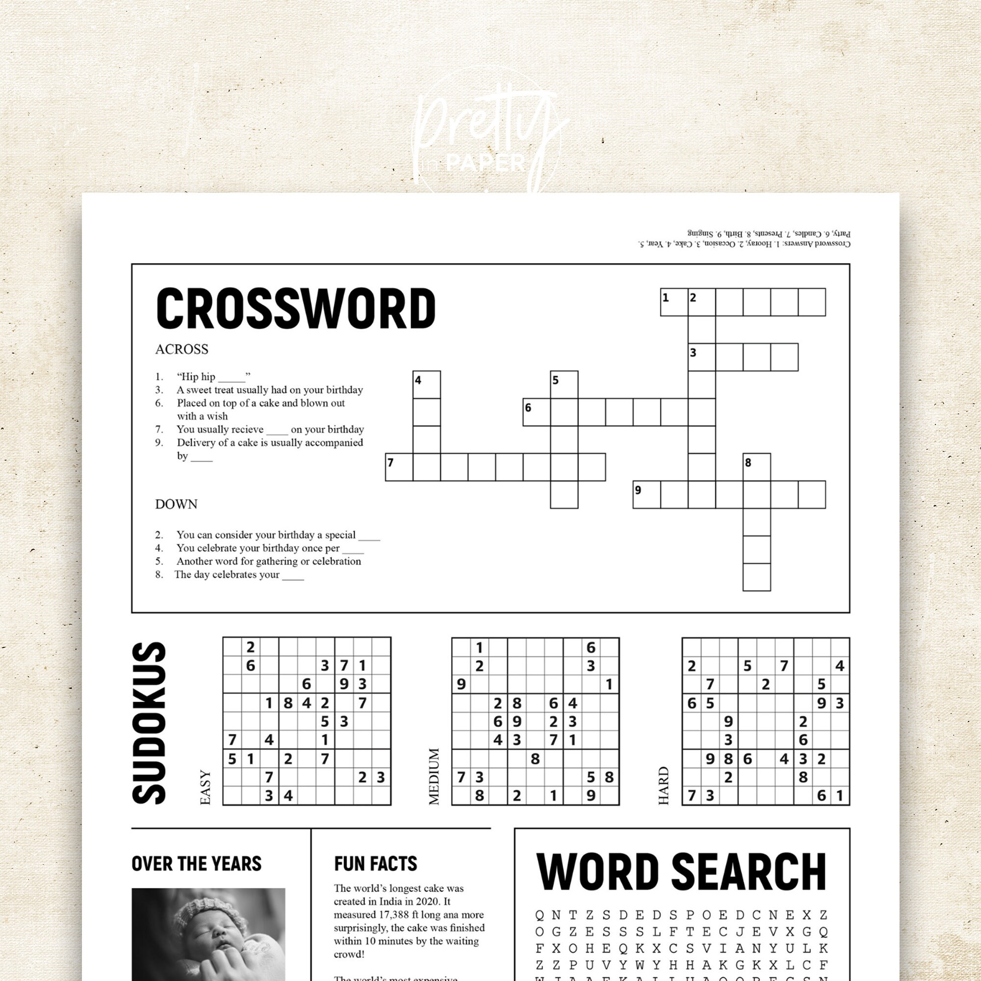 Sip and Solve Word Search Wedding Favour Quiz Wedding Crossword