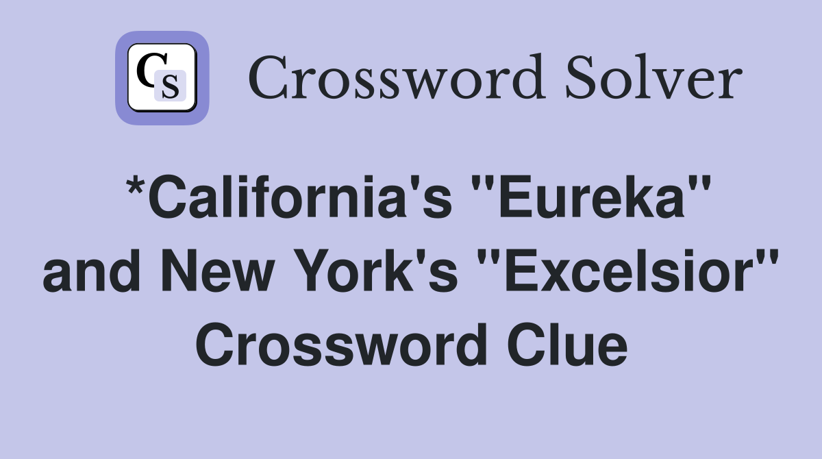 *California #39 s quot Eureka quot and New York #39 s quot Excelsior quot Crossword Clue