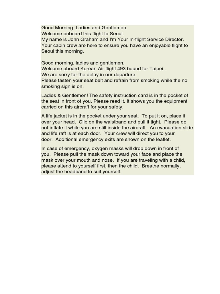 Inflight Announcement PDF Flight Attendant Aviation