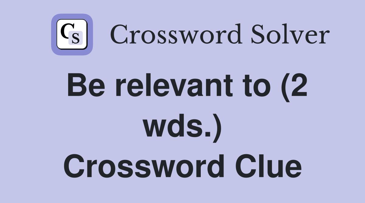 Be relevant to (2 wds ) Crossword Clue Answers Crossword Solver