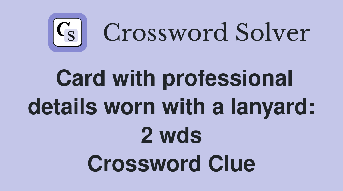 Card with professional details worn with a lanyard: 2 wds Crossword