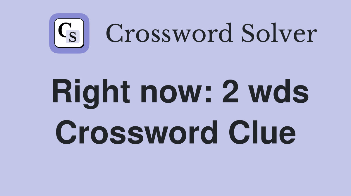 Right now: 2 wds Crossword Clue Answers Crossword Solver
