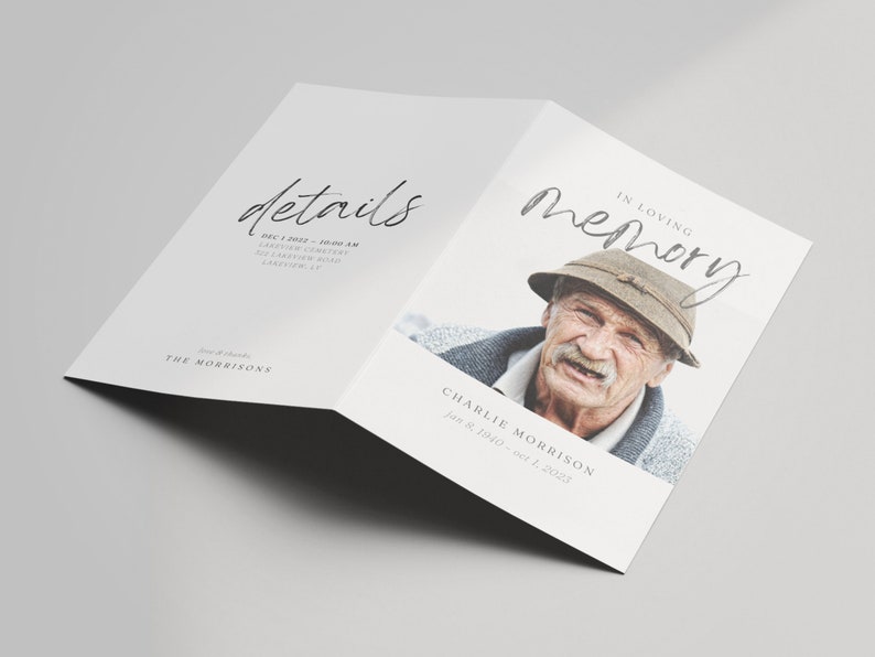 8 Page Funeral Program Template Canva Funeral Template Bi fold Obituary