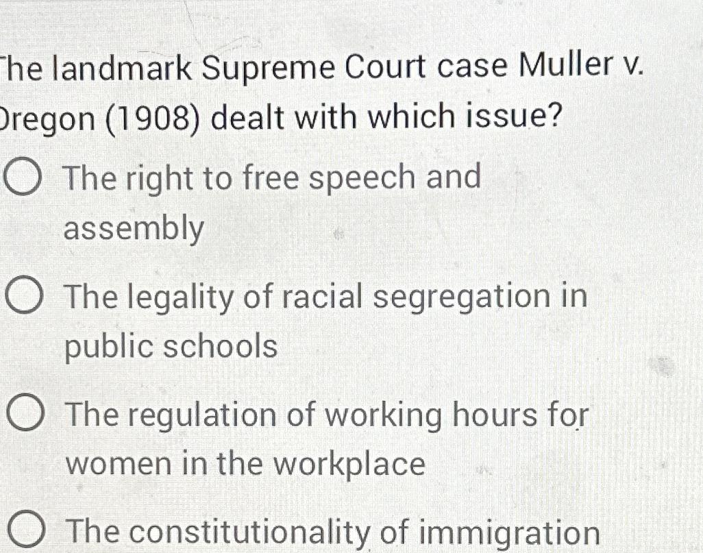 Solved he landmark Supreme Court case Muller v regon Chegg com