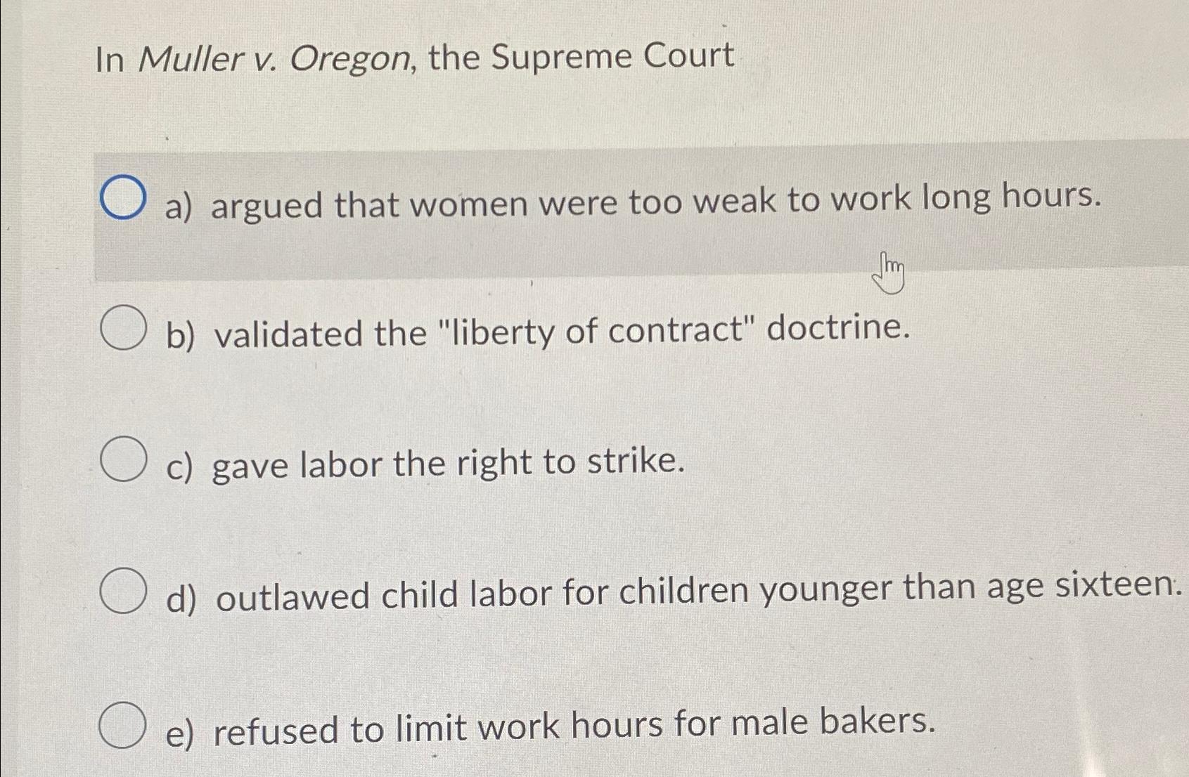 Solved In Muller v Oregon the Supreme Courta) argued Chegg com