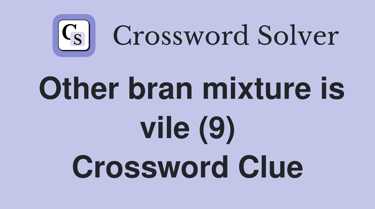 Other bran mixture is vile (9) Crossword Clue Answers Crossword Solver