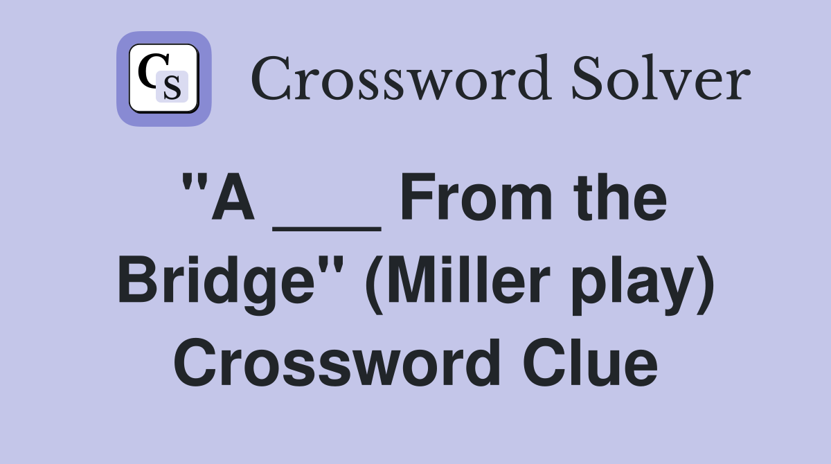 quot A From the Bridge quot (Miller play) Crossword Clue Answers
