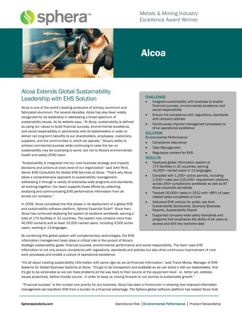 Alcoa : Sustainability : Case Study