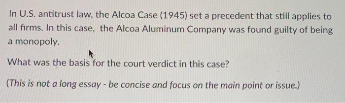 Solved In U S antitrust law the Alcoa Case (1945) set a Chegg com