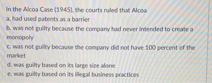 Solved In the Alcoa Case (1945) the courts ruled that Alcoa Chegg com