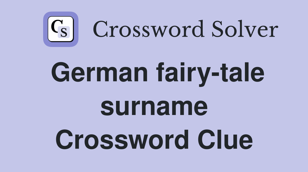 German fairy tale surname Crossword Clue Answers Crossword Solver