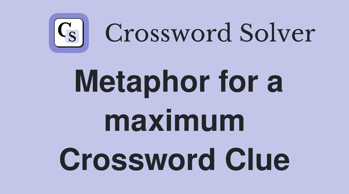 Metaphor for a maximum Crossword Clue Answers Crossword Solver