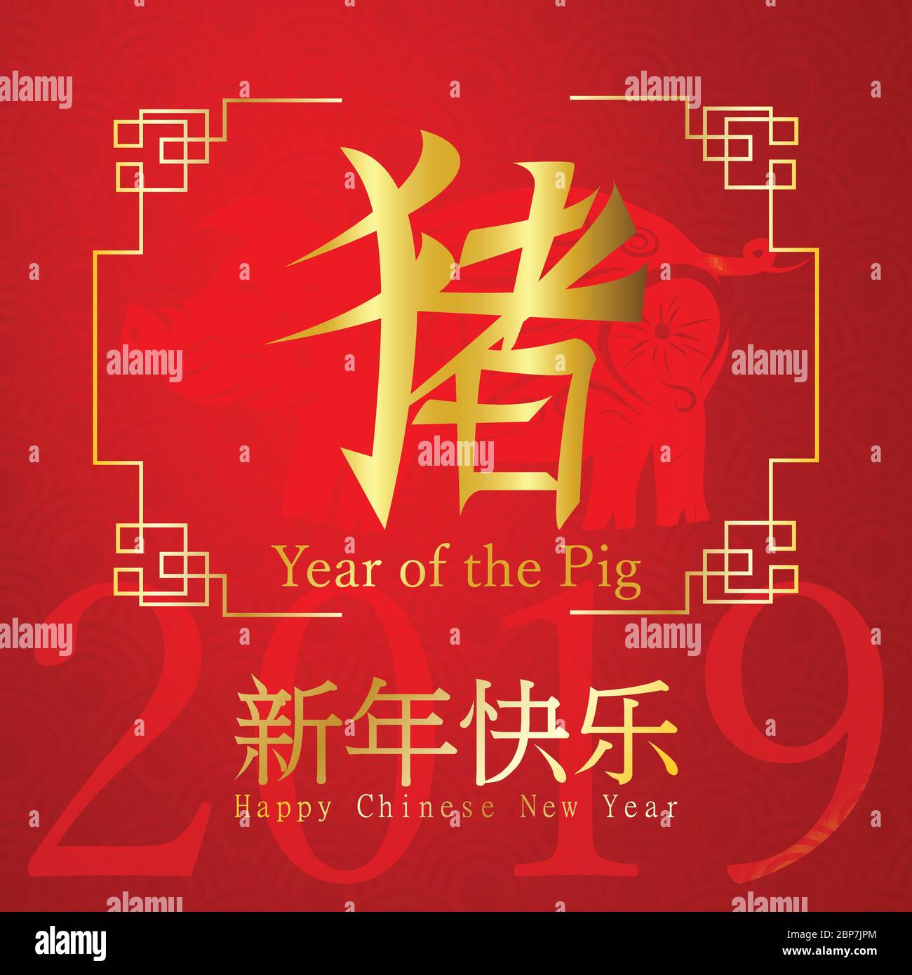 2019 Happy Chinese New Year of the Pig Characters mean vector design