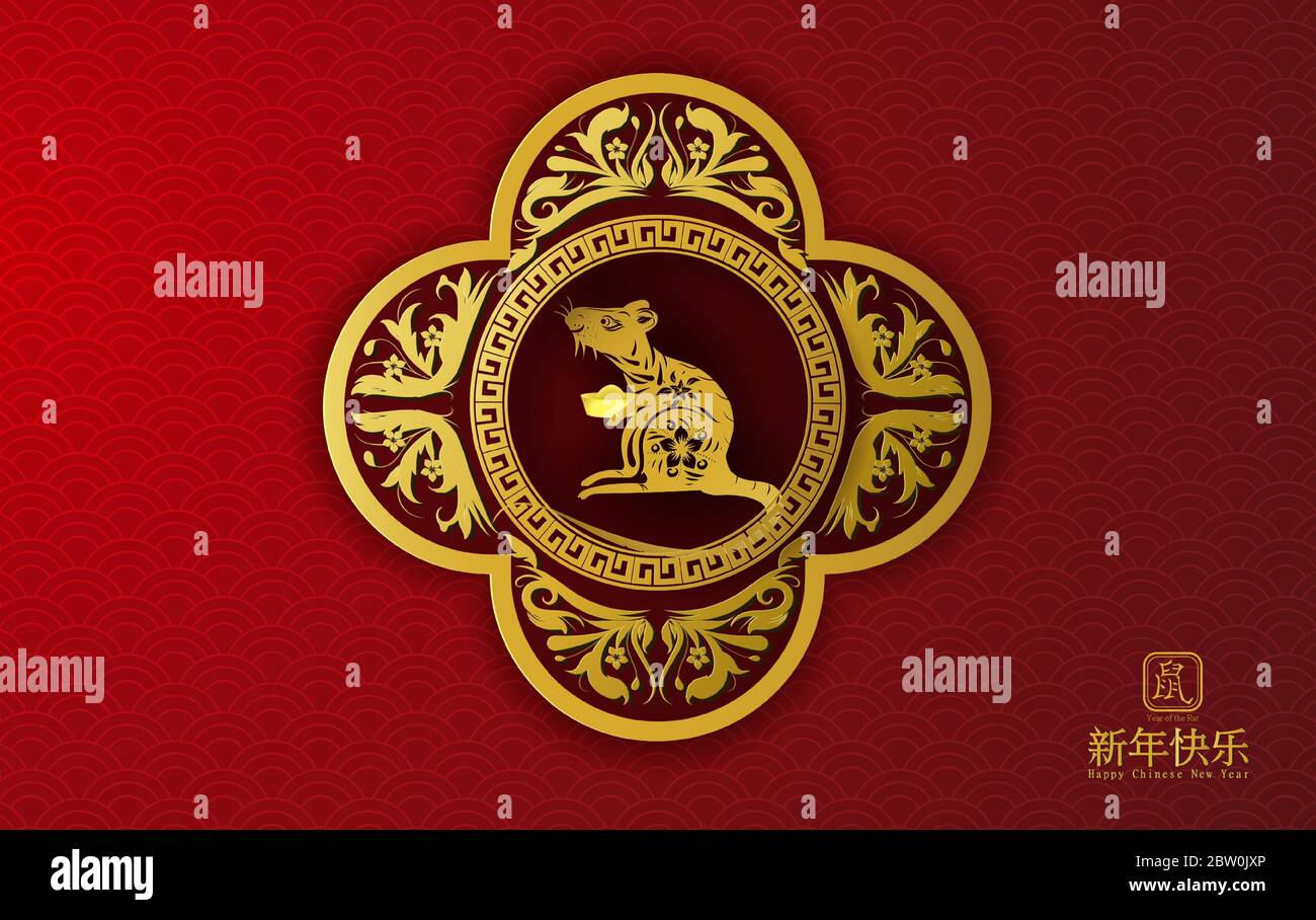 Happy Chinese New Year of the Rat hold ancient money golden Characters